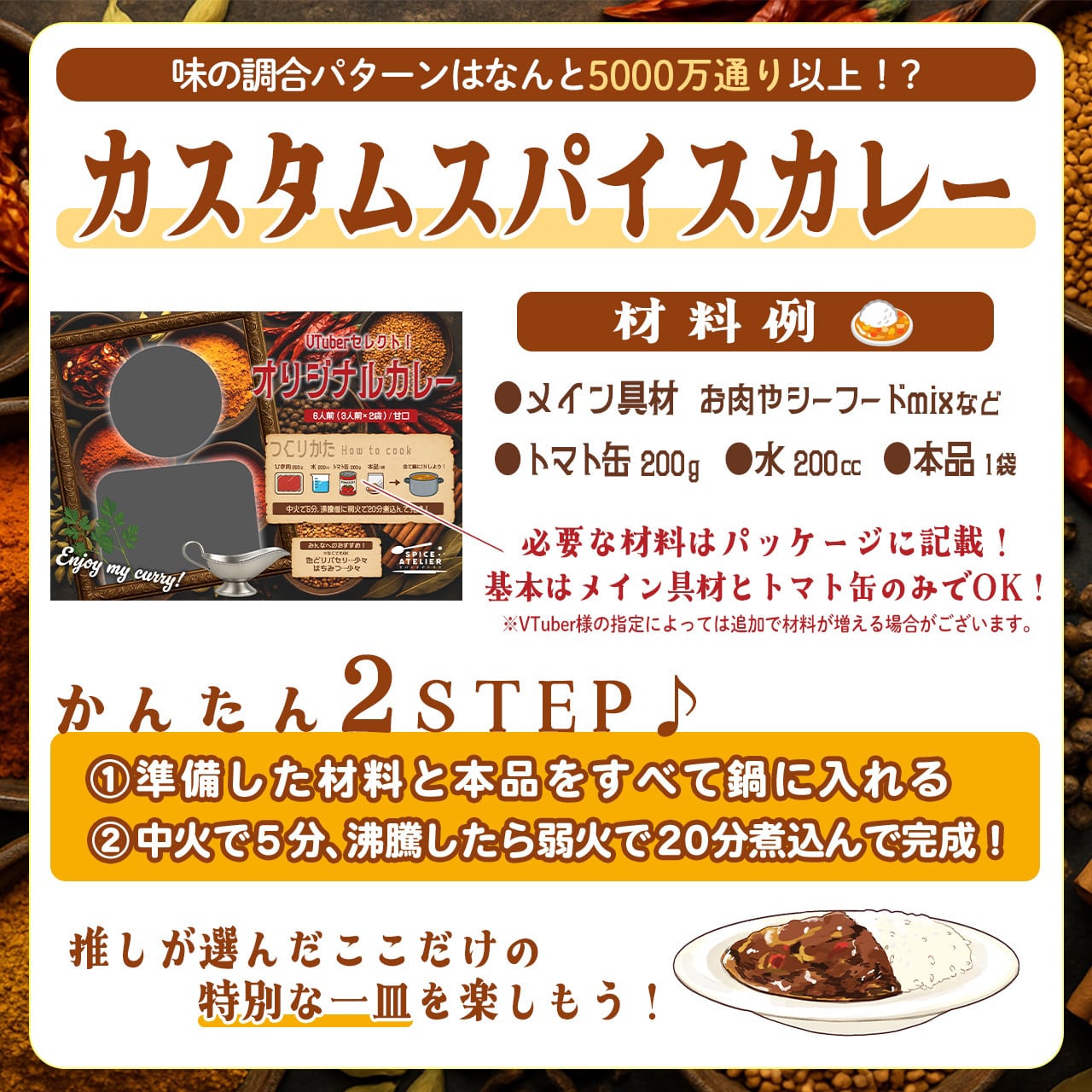 5000万通り以上の組み合わせの中から推しがセレクトした本格スパイスカレー!